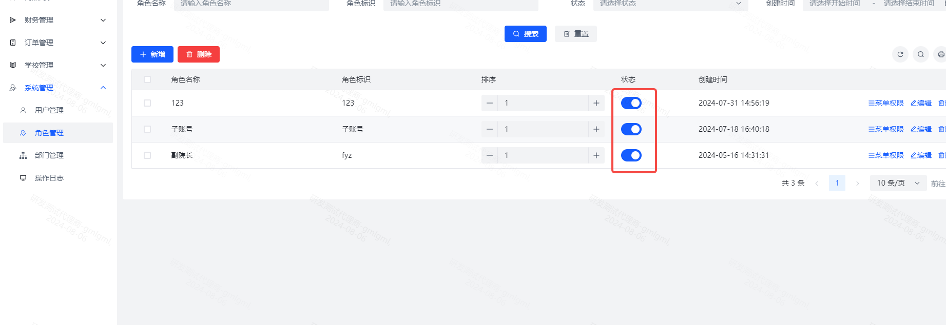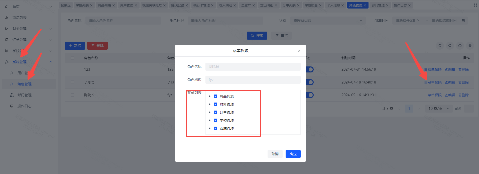 5、调整权限:点击系统管理-角色管理-对应角色的菜单权限,即可编辑角色的权限,子账号登录之后就是修改后的权限