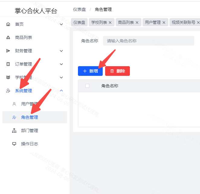 3、然后新增角色,点击系统管理-角色管理-新增编辑角色名称以及排序即可添加