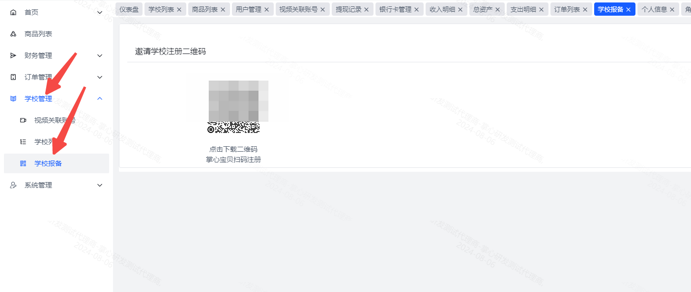 2、点击学校管理-学校报备,让园长直接使用微信扫注册二维码即可,填写学校的信息即可完成报备,不需要审核