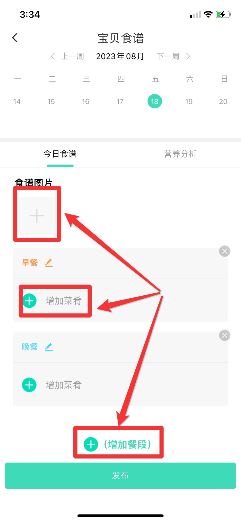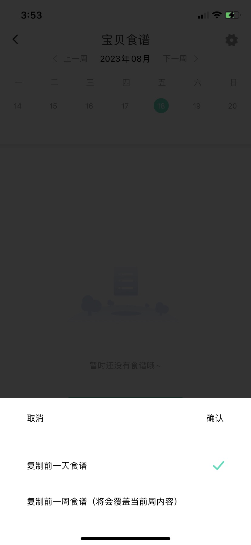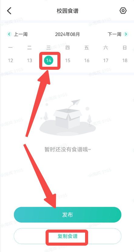 2.选择需要发布食谱的日期,也可复制前一天或前一周的食谱。