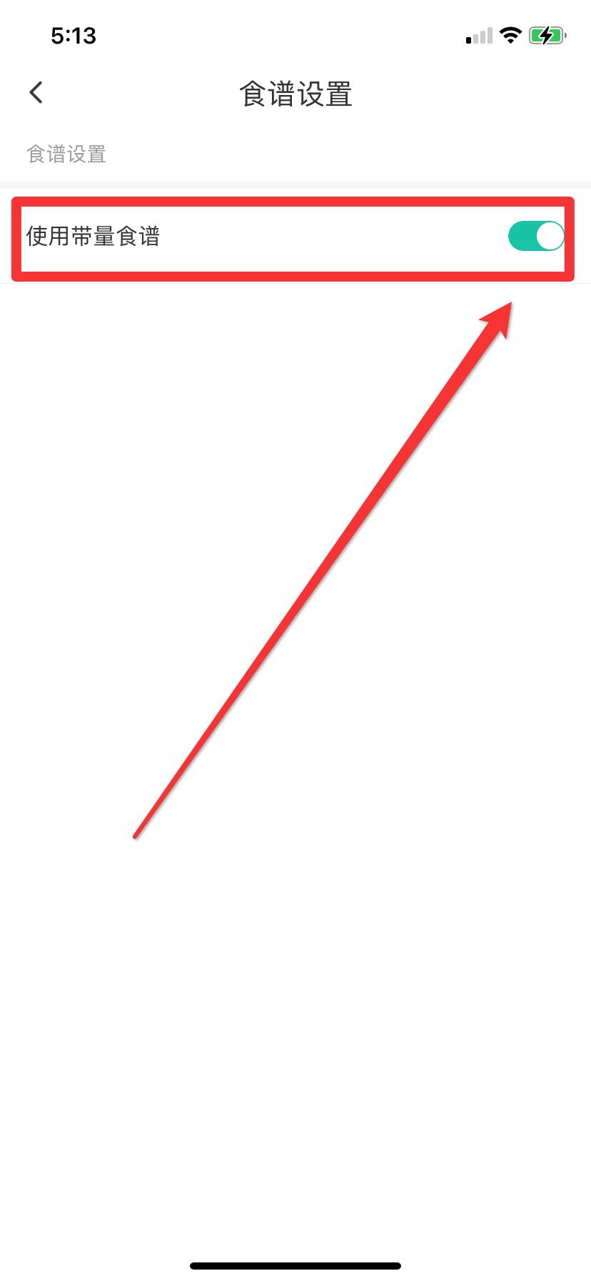 5.如需使用简易食谱可点击食谱右上角,灰色显示关闭带量食谱,绿色显示打开带量食谱。