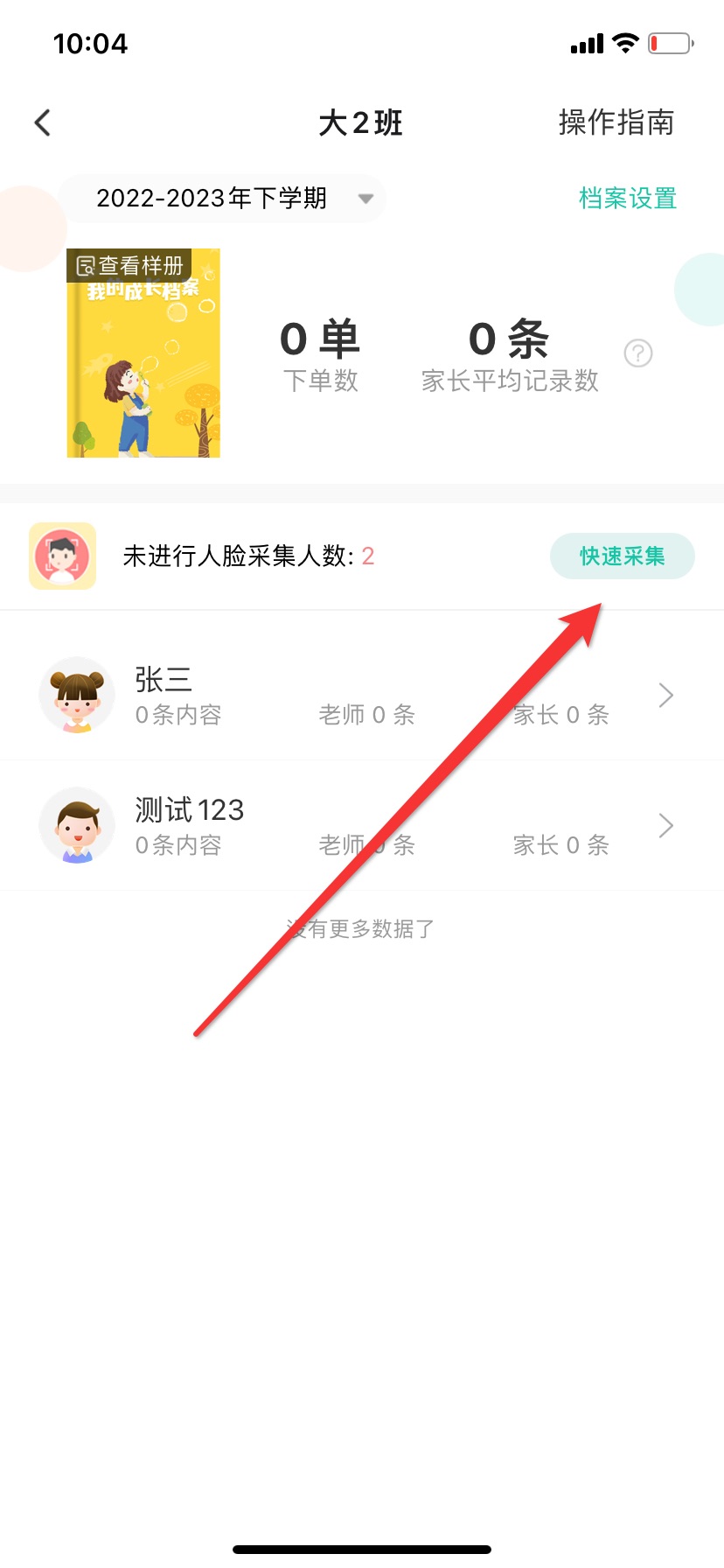 1.1 人脸采集:在“快速采集”中完成班级人脸采集工作(当天完成的人脸采集需要在第二天才能进行 ai 人脸聚类)