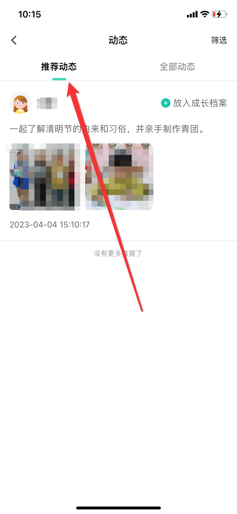推荐“从动态导入”:完成人脸采集后,在以往发布的班级动态中可自动识别出相关的照片内容,若在以往发布的动态中没有识别出来的照片、视频等内容,可在全部动态中选择手动添加。具体如下图所示: