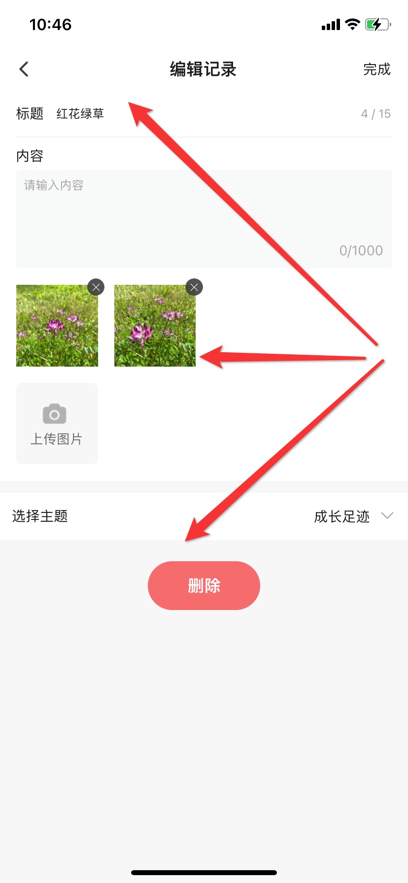 - 可修改当前添加照片主题的文字和照片内容,也可以删除当前添加的照片主题的内容。