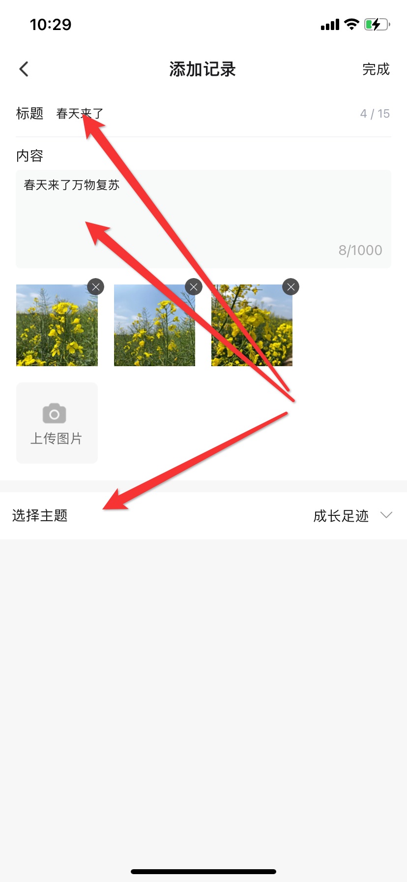 标签(必填):在发布动态时,可关联标签,主题关联标签后,即可同时把该条动态放入进入成长档案的该主题下。