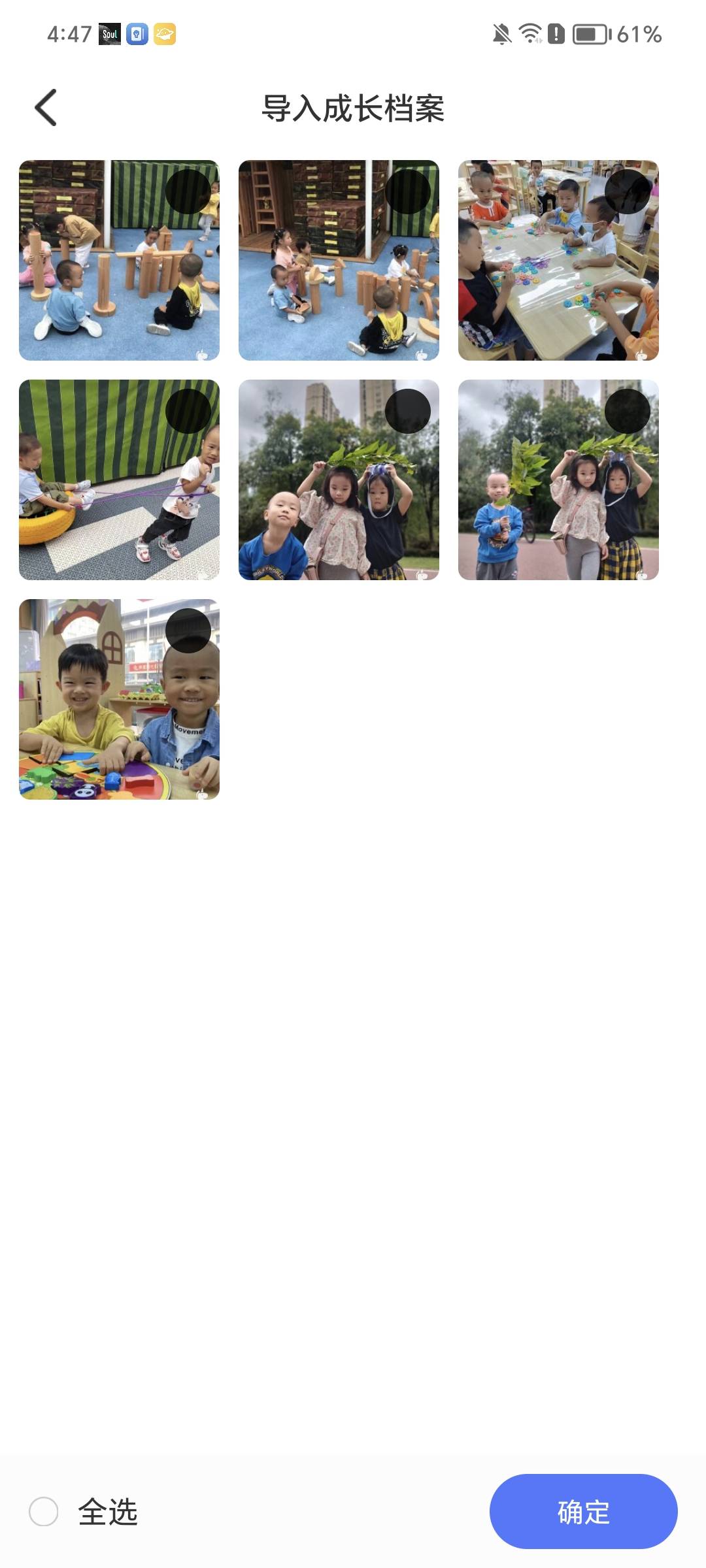 方式三:从单个学生的成长档案中选择导入班级动态照片。推荐的动态,会根据人脸聚类出当前学生的动态照片,全部动态是该学生班级的全部动态数据。