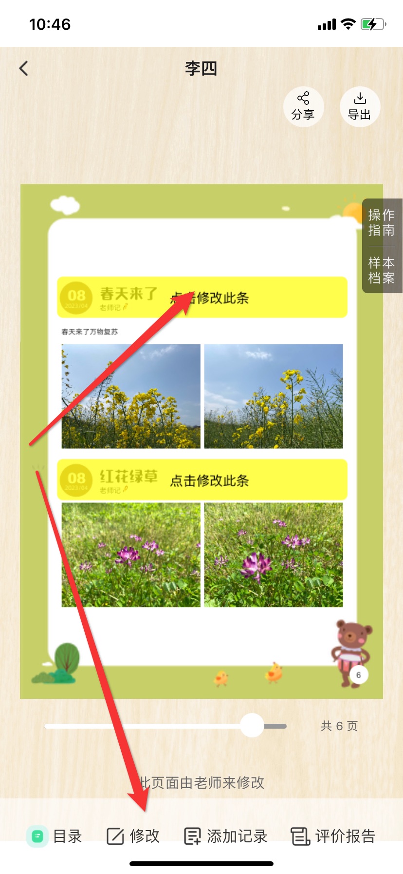 方式四:从成长档案中直接记录该学生的成长档案内容: