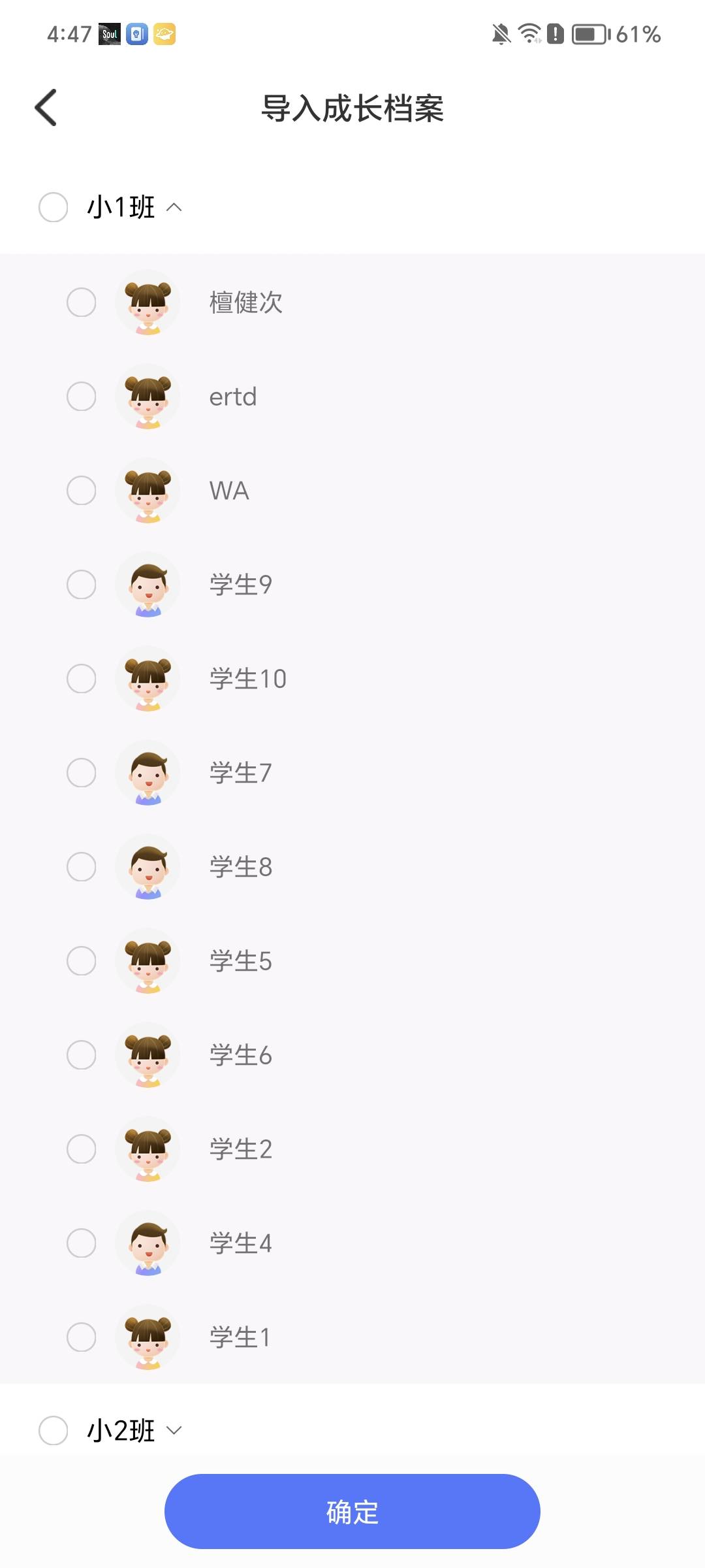 - 评价模版:成长档案中为大、中、小三个不同年级分别设置了不同的评价指标模板,用户可根据需要选择对应的评价模板,并根据档案使用者的年龄段选择合适的班级。