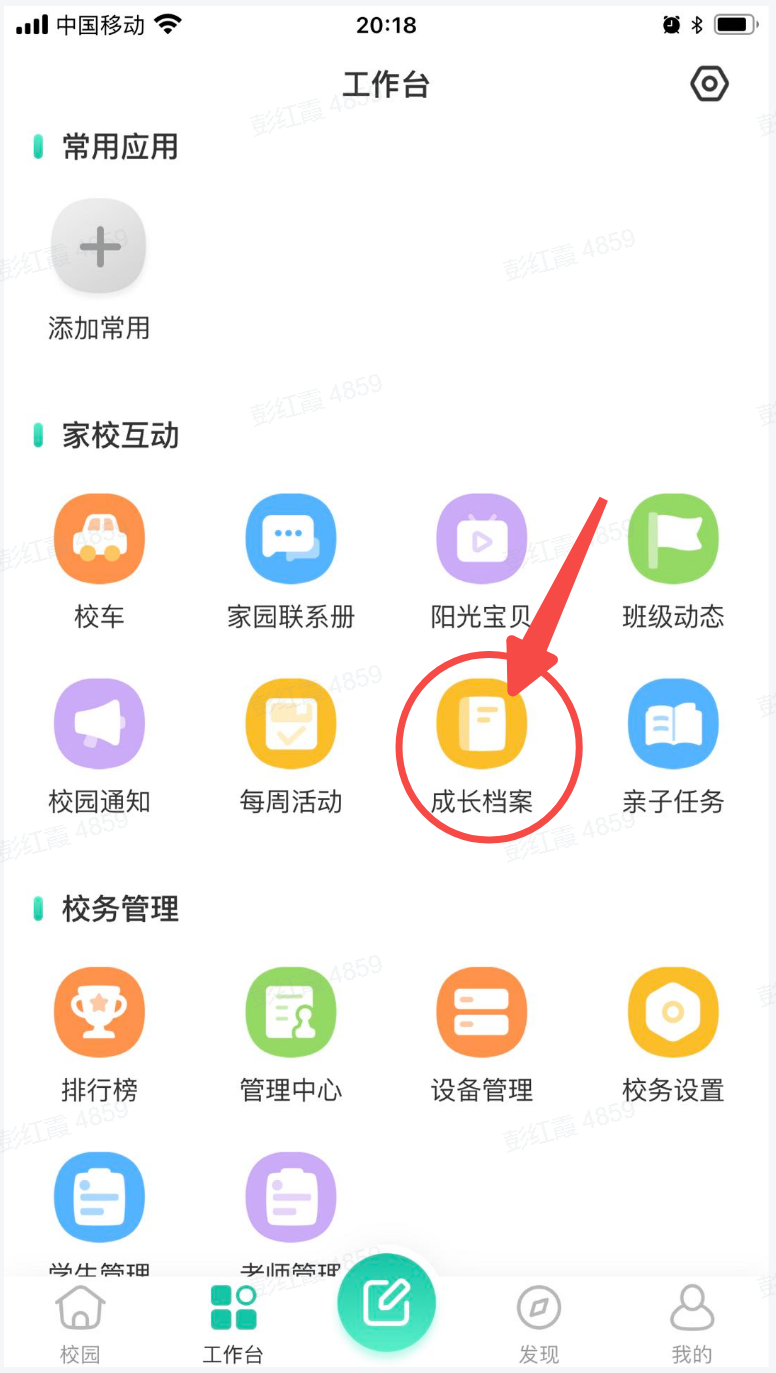 一、登录掌心宝贝 APP 园丁端(账号:手机号、初始密码:手机号后 6 位)——工作台——成长档案