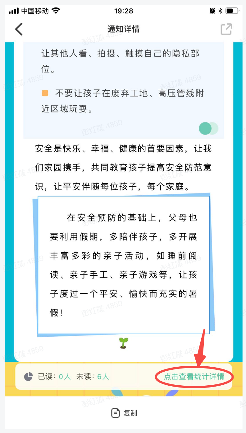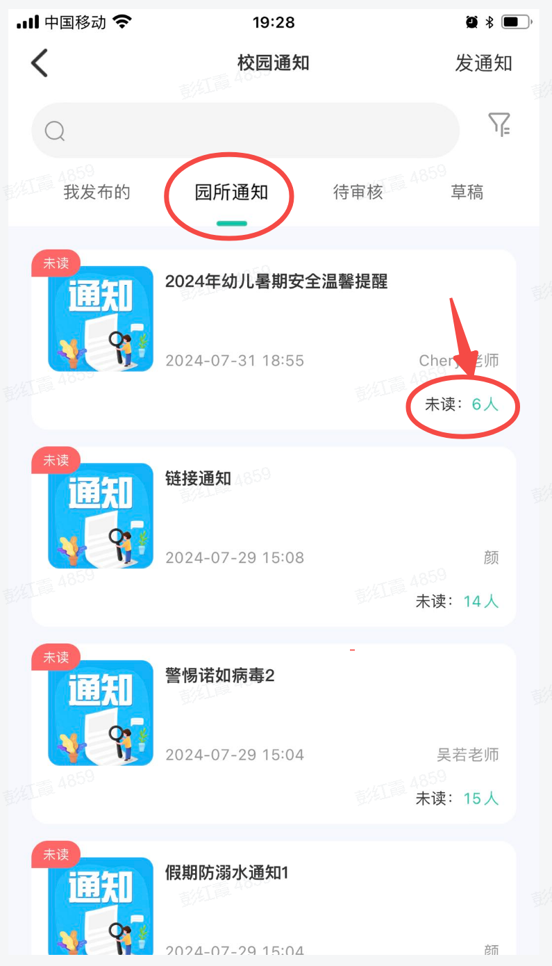 操作方法:登录园丁端 APP——工作台——校园通知——查看通知——点击查看详情——查看“已读”/“未读”状态;