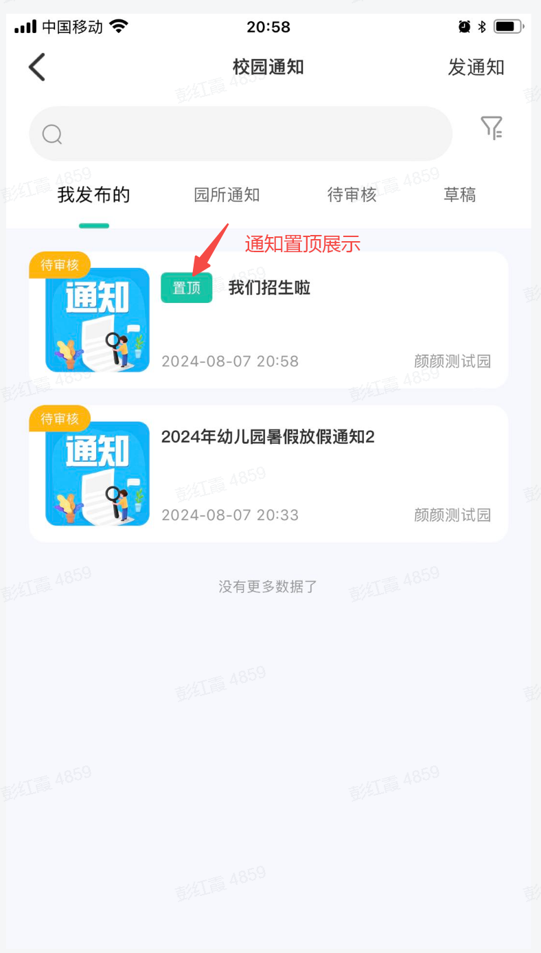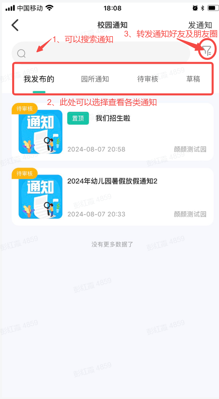 在通知发布后,老师可在园丁端 APP 或园长后台查看该通知及家长查阅通知“未读”、“已读”、“未签字”、“已签字”的情况;通知的统计详情查看需要设置权限,通过角色权限配置方可查看通知查阅情况。