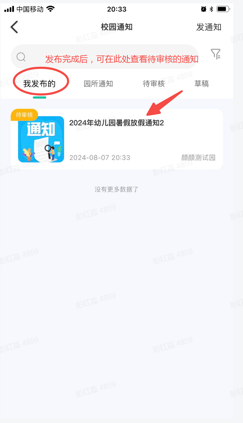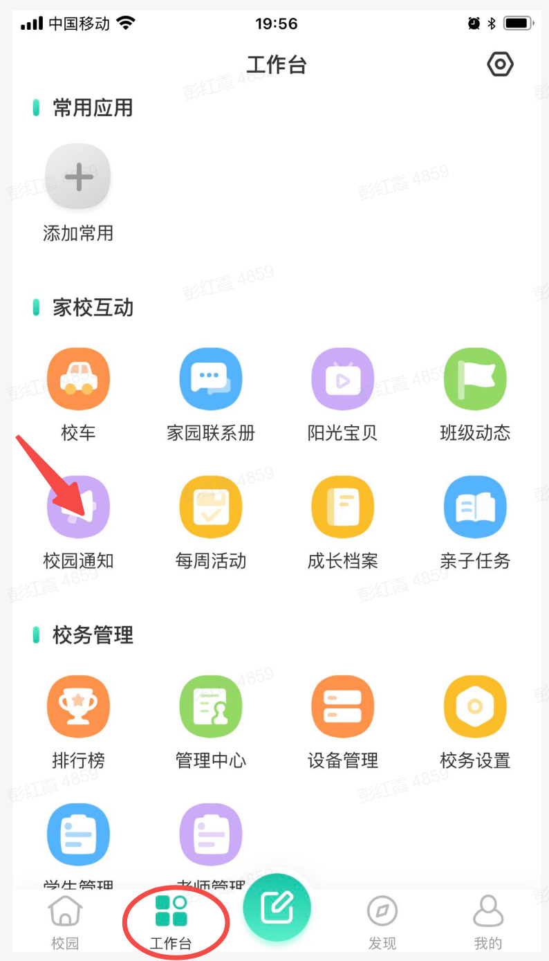 操作方法:登录园丁端 APP——工作台——“校园通知”——进入校园通知主页面——点击右上角的“发通知”——选择通知模板——根据模版格式填写内容——点击“完成”即可,具体如下图所示:
