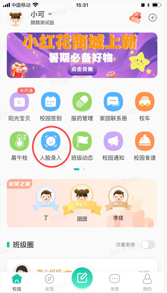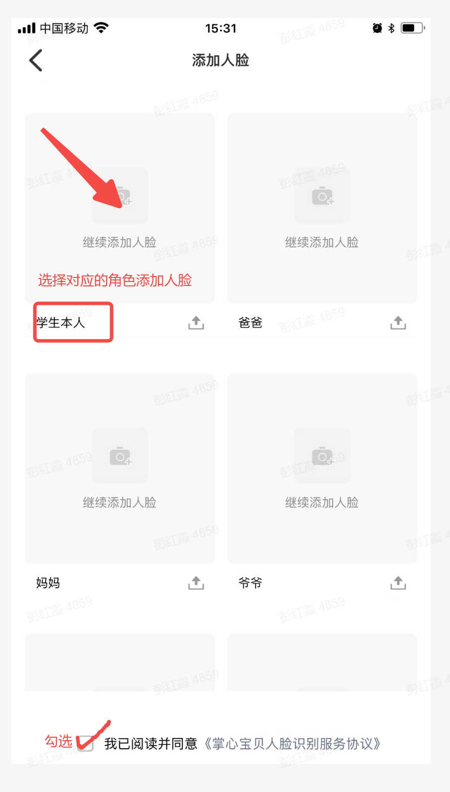 园所已安装对接好人脸考勤设备,同时完成家长及学生信息注册后,家长可在 APP 上录入孩子及亲友的人脸采集,用于后续园所考勤设备的人脸识别使用,若园所未对接相关设备则无需录入人脸。