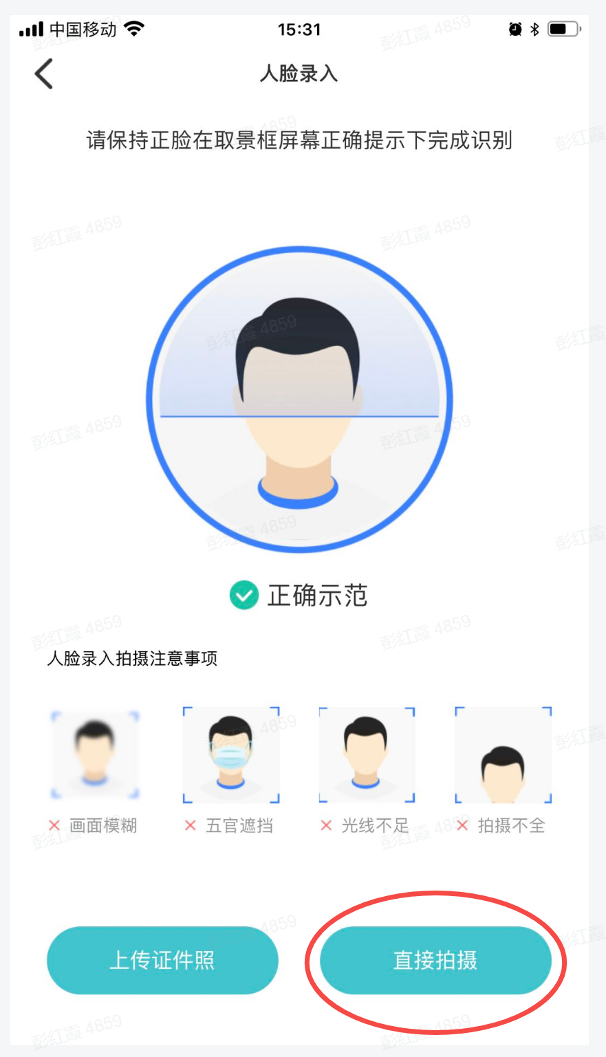录入方法:登录家长 APP——人脸录入——添加人脸——“上传证件照“或“直接拍摄”方式,建议采用”直接拍摄“方式录入,图片的信息采集 APP 实时处理较完整;具体如下图: