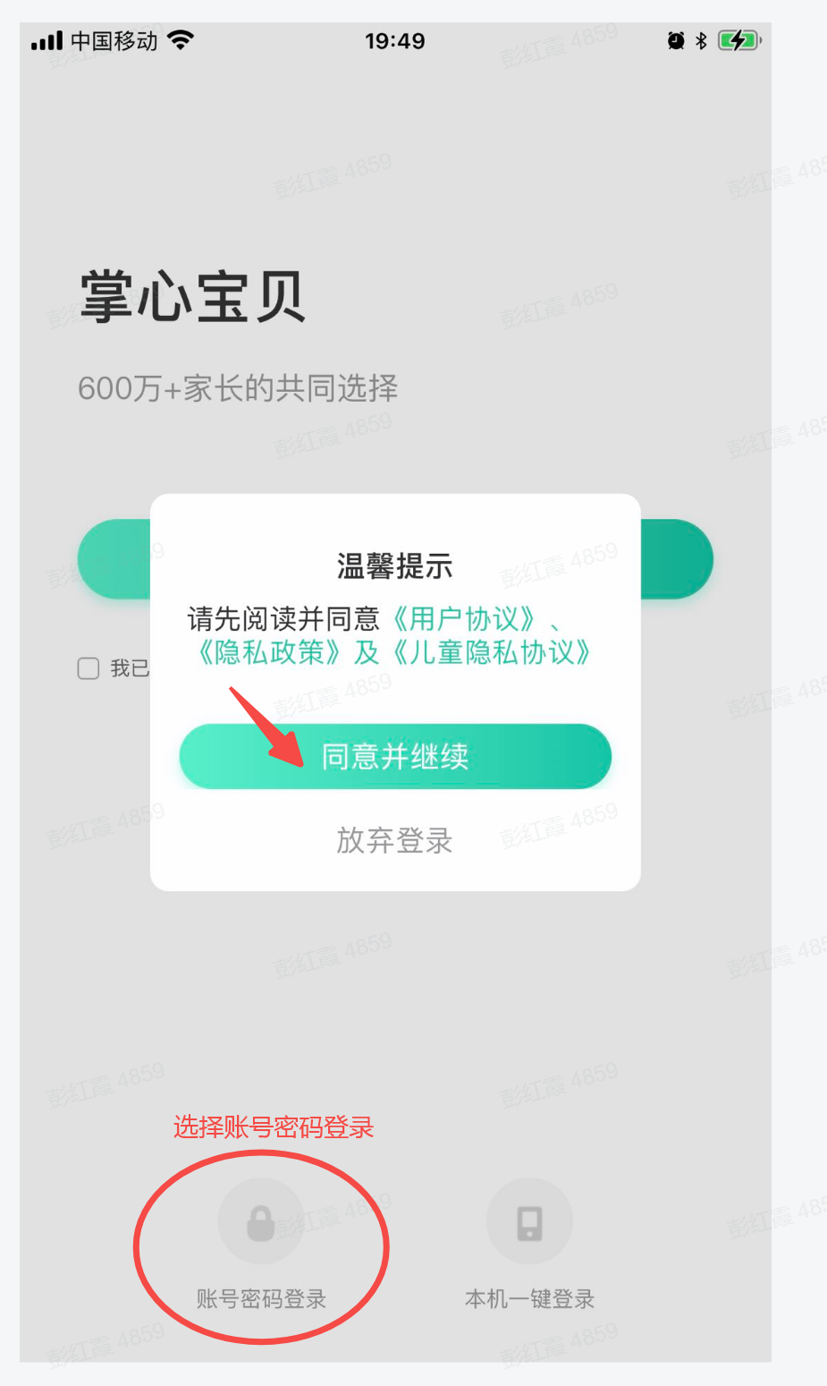家长注册完成后,APP 默认的初始密码为手机号后 6 位,可采用手机账号及初始密码进行登录。