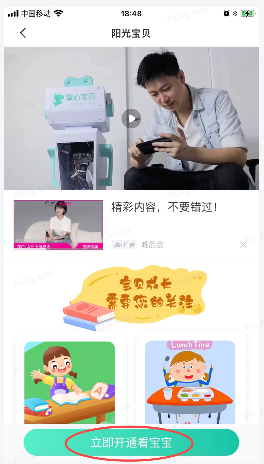 注:APP 上“掌心会员”不包含在线看宝宝视频功能,请留意上述“开通看宝宝”视频的操作方法;